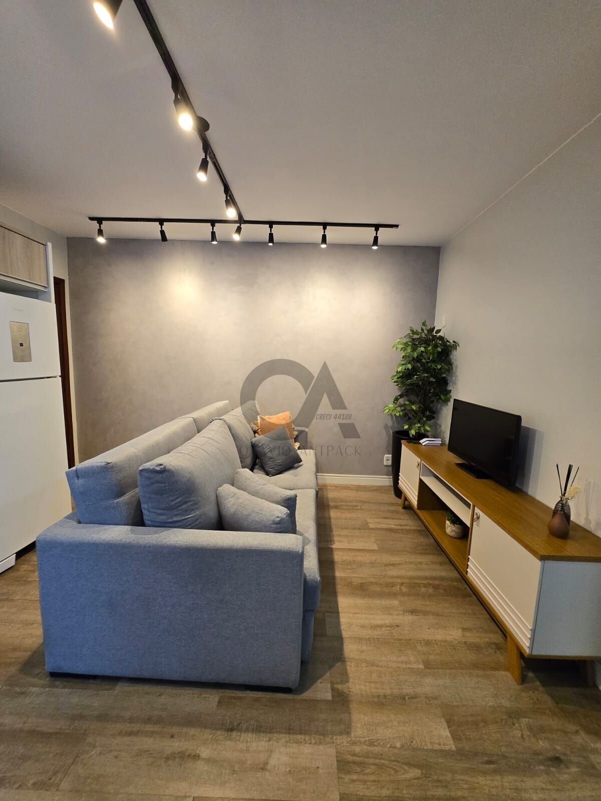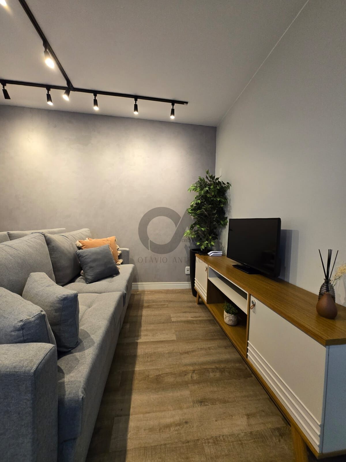 • Áreas: Sala integrada, cozinha com forno e fogão embutidos, área de serviço com bancada funcional