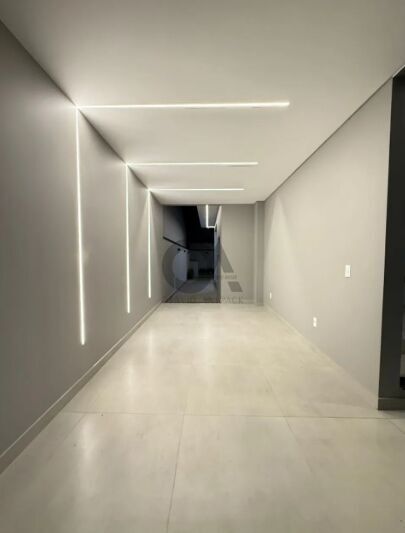 - Áreas internas: Sala de estar com pé-direito alto e sanca em gesso, cozinha integrada